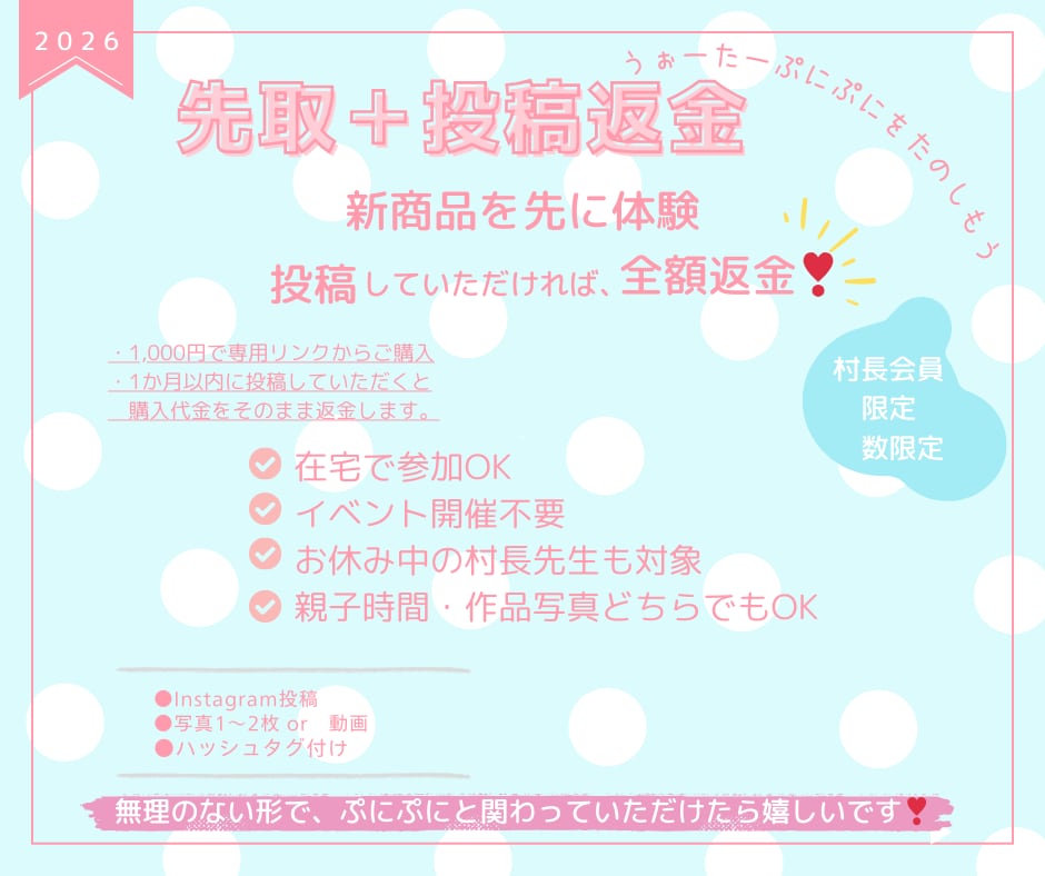 こちらは うぉーたーぷにぷに村長会員さま限定 の特別企画です。